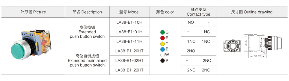 Extended(maintained)push button switch