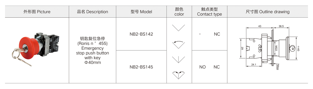 Emergency stop push button with key